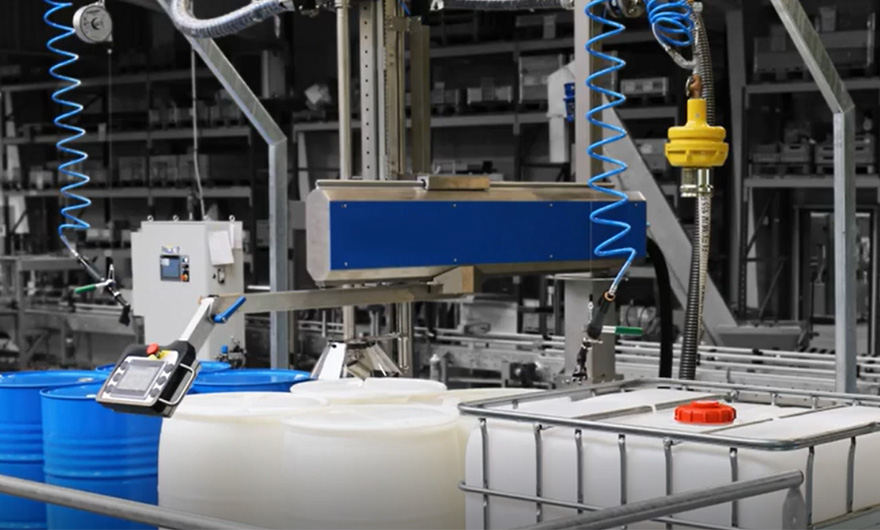 從包裝桶底部采液下式傘狀灌裝,可以抑制泡沫產(chǎn)生,防止物料飛濺;也可抑制灌裝過程中產(chǎn)生靜電,搭配充氣裝置,可極大的消除易爆液體灌裝時所產(chǎn)生之危害。